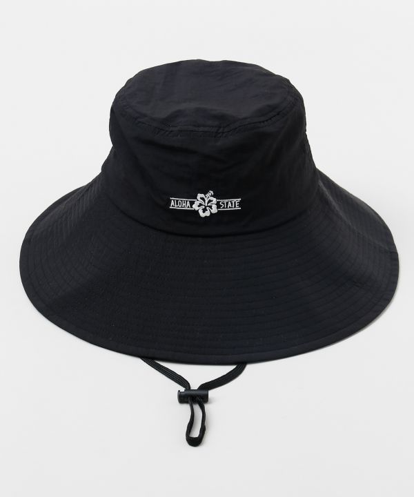 軽やかな薄手素材にALOHAの刺しゅうが映えるUVハット。顎ひも付きで風の日も安心。UVカット仕様で、おでかけやレジャーにぴったり。ナチュラルな風合いと涼しげなデザインがハワイらしい魅力を添えます。