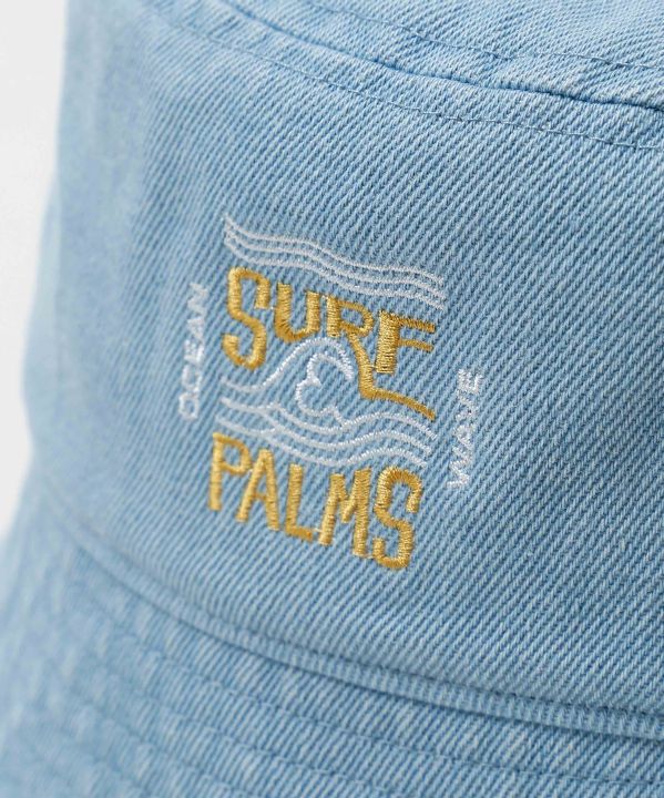 デニム素材にALOHAの刺しゅうを施したハット。シンプルな中にハワイらしいアクセントをプラス。サイズ調整可能で、ビーチやタウンユースにもぴったりな万能アイテム。