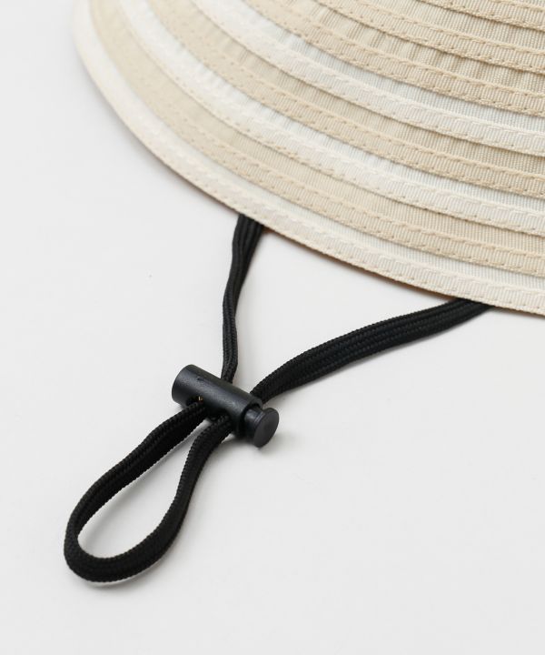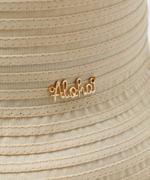 折りたたんでもしわになりにくいグログラン素材のUVハット。チャームがさりげないアクセントになり、上品な印象。UVカット仕様と顎ひも付きで実用性も高く、リゾートにもおでかけにもおすすめ。