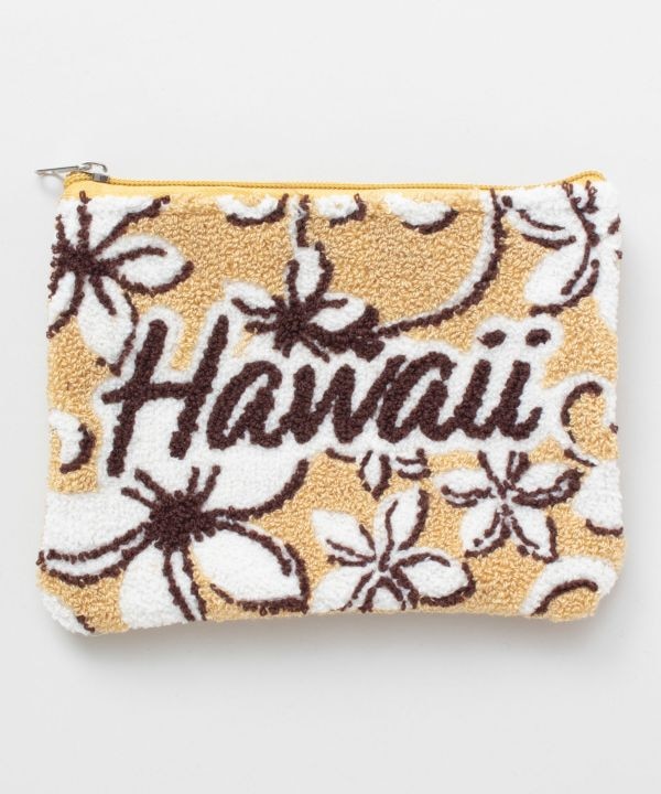 爽やかなカラーのサガラ刺しゅうがポイントのポーチ。ふっくらとした立体感が可愛らしく、コスメや小物の収納にぴったり。ハワイらしい明るい印象で、バッグの中でも気分が上がるアイテム。