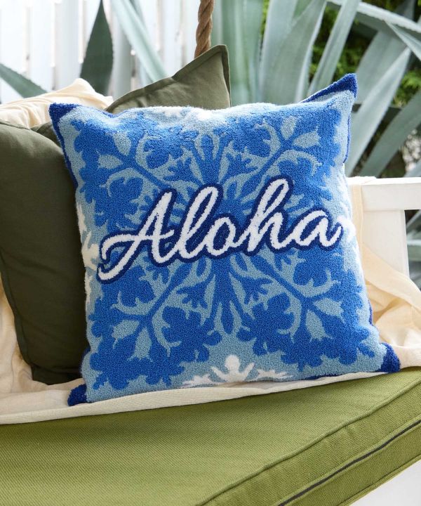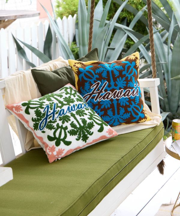 通年使いやすいキルトデザインのクッションカバー。立体感のある刺しゅうがアクセントになり、お部屋を優しい印象に。リビングやベッドルームにハワイのぬくもりを添えます。