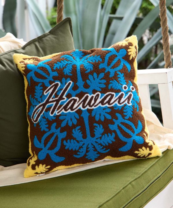 通年使いやすいキルトデザインのクッションカバー。立体感のある刺しゅうがアクセントになり、お部屋を優しい印象に。リビングやベッドルームにハワイのぬくもりを添えます。