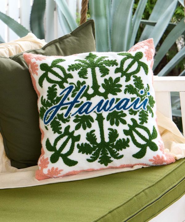 通年使いやすいキルトデザインのクッションカバー。立体感のある刺しゅうがアクセントになり、お部屋を優しい印象に。リビングやベッドルームにハワイのぬくもりを添えます。