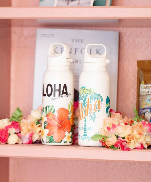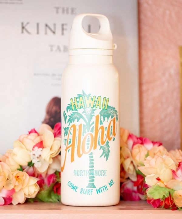 「リノハウ(ハワイ語で輝く風)」の名を持つボトル。ワンプッシュで開く便利な設計に、茶こしと持ち手が付いた機能的なデザインです。爽やかな色合いがハワイの風を感じさせ、毎日の水分補給を楽しくしてくれます。