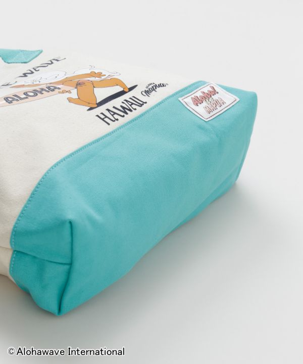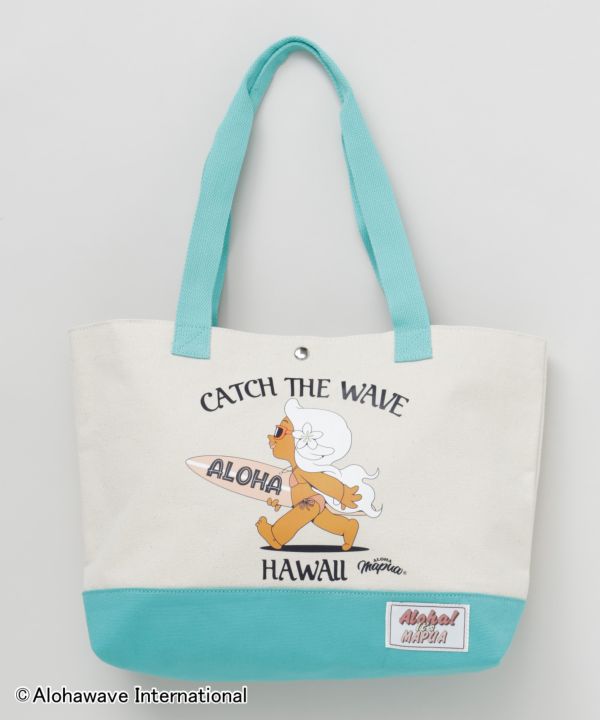 【Kahiko×Aloha Mapua】サーフィンとファッションをこよなく愛するキャラクター「Aloha Mapua(アロハマプア)」の世界観が詰まったトートバッグ。ハワイの海と太陽を感じる明るいプリントがポイント。マチ付きで収納力があり、デイリー使いからおでかけまで幅広く活躍。軽やかな綿素材で持ち心地も快適。