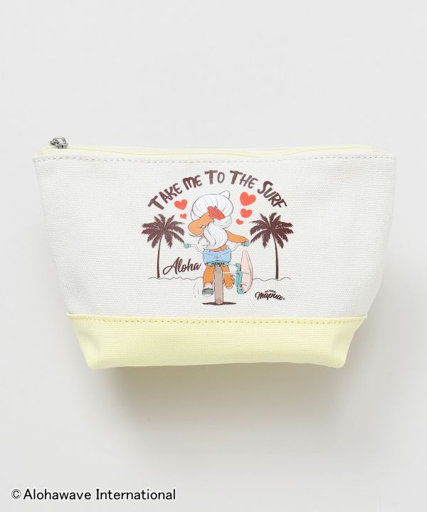 【Kahiko×Aloha Mapua】サーフィンとファッションをこよなく愛するキャラクター「Aloha Mapua(アロハマプア)」が描かれたポーチ。手のひらサイズながらマチ付きで収納力抜群。コスメや小物入れにぴったりで、バッグの中でも存在感のあるかわいらしいアイテム。