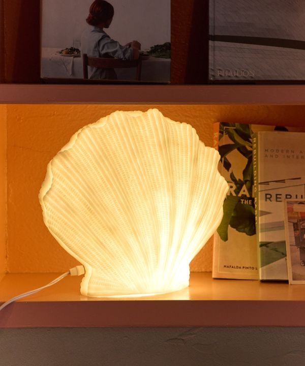 貝殻のフォルムが美しいシェルランプ。やわらかな光が広がり、まるで海辺のリゾートのような穏やかな空間を演出します。自然を感じるデザインはインテリアのアクセントにぴったり。存在感のあるサイズでお部屋を華やかに彩ります。