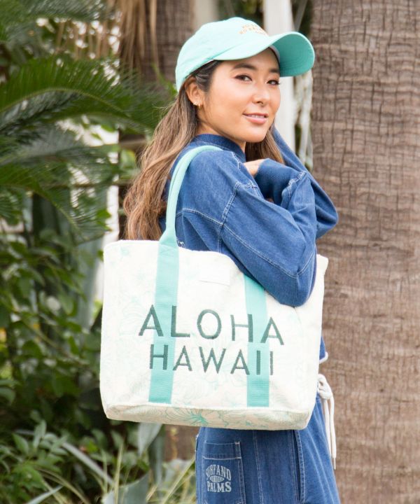 肌ざわりの良いパイル素材を使用したトートバッグ。柔らかく軽い質感で、肩掛けもできる持ちやすいデザイン。ハワイのリラックスムードを感じさせる優しい雰囲気が魅力のアイテム。