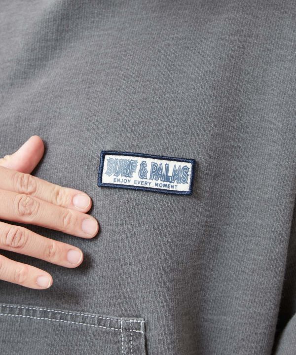 デニム風裏毛とデニムの切り替えデザインが目を惹くフード付きトップス。背中のパッチ刺しゅうとプリントがアクセントに。短めの丈感でバランス良く着こなせ、ハーフパンツやパンツとのセットアップコーデもおすすめです。
