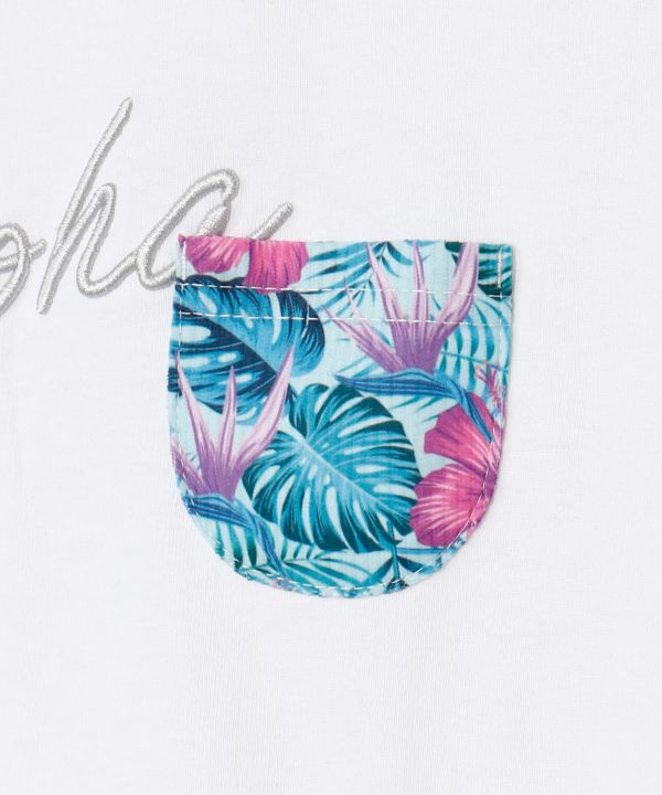 UVカット機能と吸湿速乾性を兼ね備えたTシャツ。さらっとした着心地で夏にぴったりです。胸ポケットに施された立体的な刺しゅうとプリントがデザインのポイント。シンプルながら存在感のあるアイテムです。
