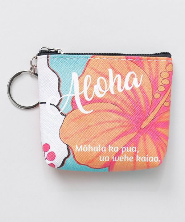 ハワイらしいデザインが魅力のポーチ型キーホルダー。ファスナー付きで小銭やリップなどの小物入れとしても使えます。バッグに付ければアクセントになり、いつでも気軽にハワイ気分を楽しめるアイテムです。