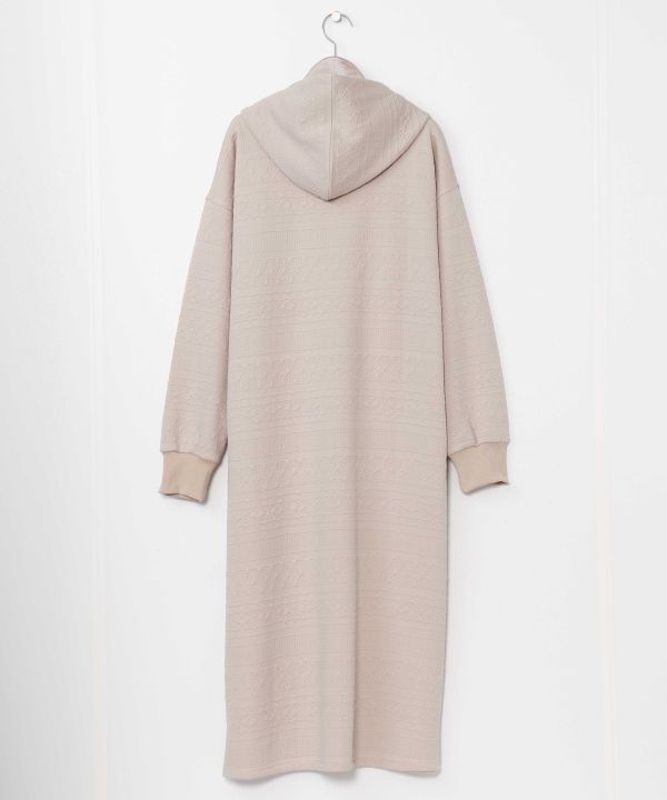 ストレッチ性のあるふくれジャカード素材を使用したワンピース。程よい厚みと伸縮性で動きやすく、シーズンを問わず快適に着用できます。シンプルながらも上品な印象の一枚。