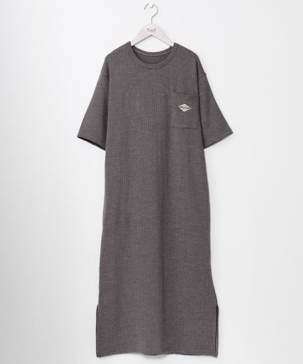 機械刺しゅうとコード刺しゅうを組み合わせたデザインが印象的なワンピース。ワッペンがアクセントとなり、ワッフル生地のさらっとした肌触りで快適に着用できます。カジュアルながらも華やかさのある一枚です。