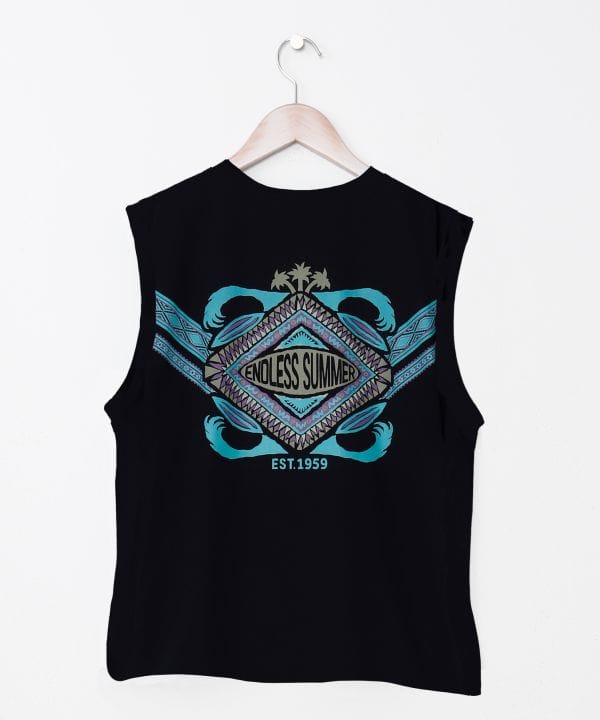 UVカット機能と吸湿速乾性を兼ね備えたノースリーブトップス。ヴィンテージ風のプリントが程よい存在感を放ち、さらっと快適な着心地。デニムやスカートにも合わせやすい万能アイテムです。