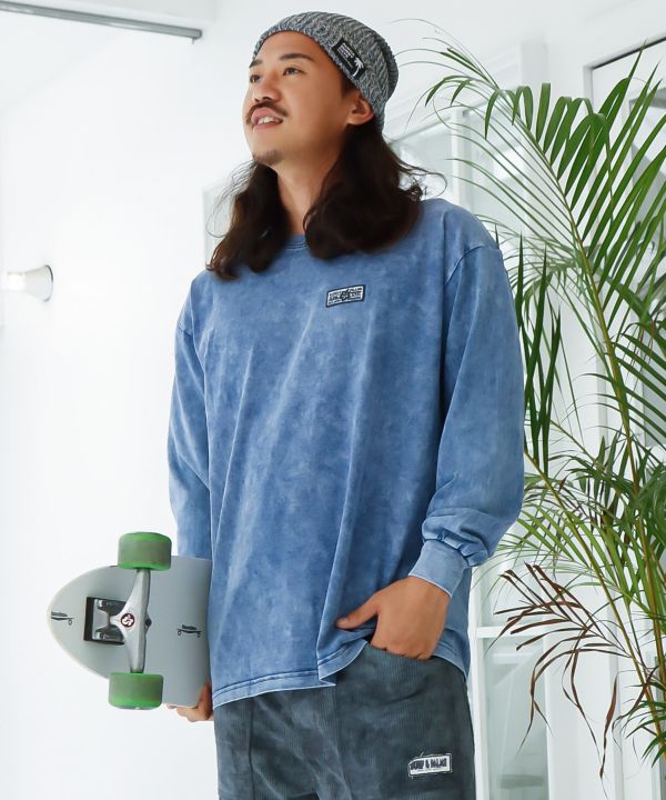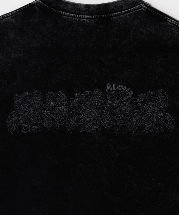 ハイビスカスの刺しゅうが印象的なメンズロングTシャツ。加工感のあるビンテージライクな風合いが、ナチュラルでカジュアルな着こなしを演出します。