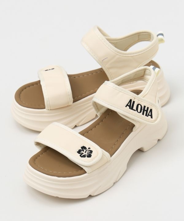 トレンドの厚底ソールがポイントのハイビスカスサンダル。しっかりホールドされて歩きやすく、リゾートにもタウンユースにもマッチ。足元からハワイの華やかさを感じられるデザイン。