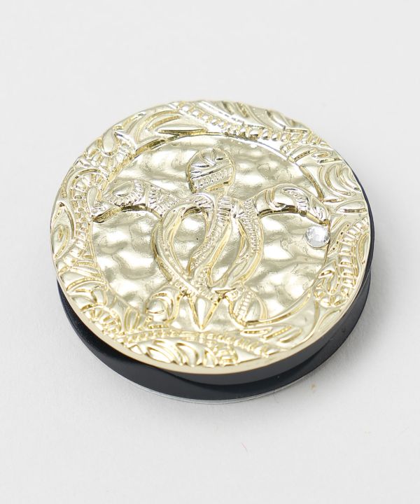 ホヌをモチーフにしたハワイアンジュエリーデザインのスマホグリップ。海の守り神とされるホヌの存在が、癒しとお守りのような安心感を添えます。片手操作をサポートし、スマホスタンドとしても使える便利なアイテムです。