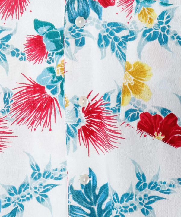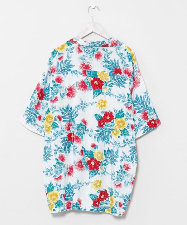 南国の植物をモチーフにしたボタニカル柄のメンズアロハシャツ。軽やかな素材感で、リゾートにも日常にも取り入れやすいデザインです。