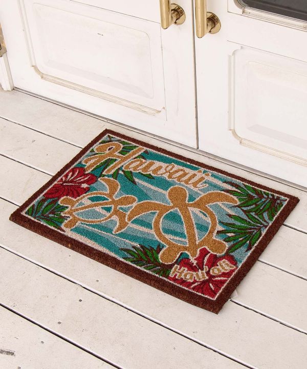 ハワイの豊かな自然を感じさせる天然素材のココヤシマット。南国らしいモチーフが玄関を明るく彩り、置くだけでハワイの風を感じる空間に。裏面滑り止め加工付きで実用性も抜群です。