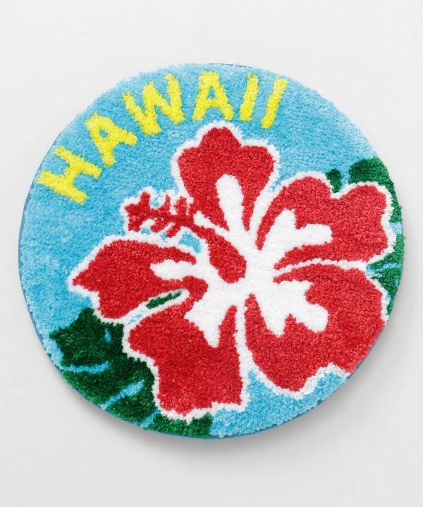 ハワイのモチーフが施されたパイル素材のチェアパッド。ふかふかの厚みで座り心地抜群。椅子の上はもちろん、床に置いてクッション代わりにも。お部屋を明るく彩るハワイアンデザインです。