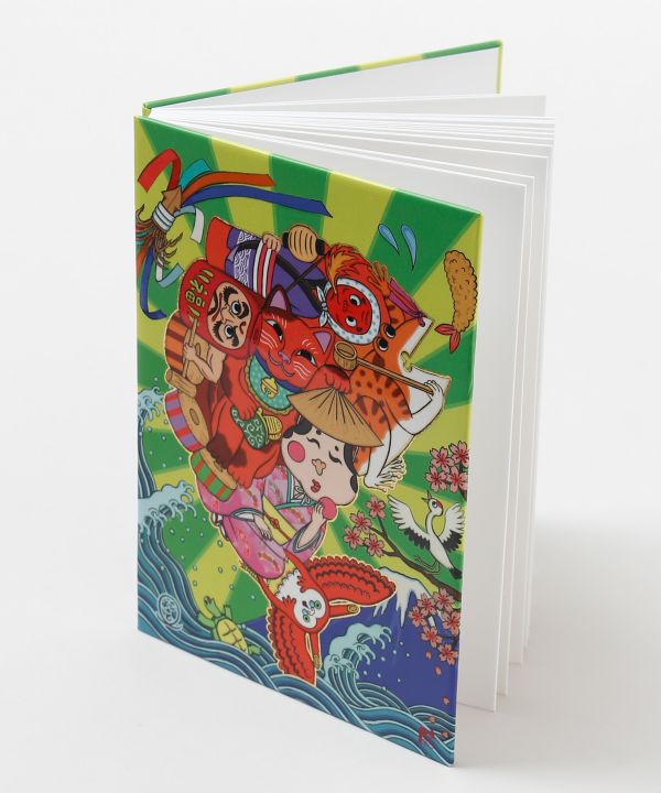 【倭物やカヤ×鈴木ひょっとこ】伝統×現代の融合を魅力的に描く、画家・鈴木ひょっとことのコラボ商品。鮮やかな色彩と独特な世界観が表現された御朱印帳。しっかりとした装丁で扱いやすく、片面24頁の仕様。神社仏閣巡りのおともにはもちろん、旅の思い出帳やアートブックとしても楽しめます。和とモダンが融合した、持つだけで心躍る一冊です。