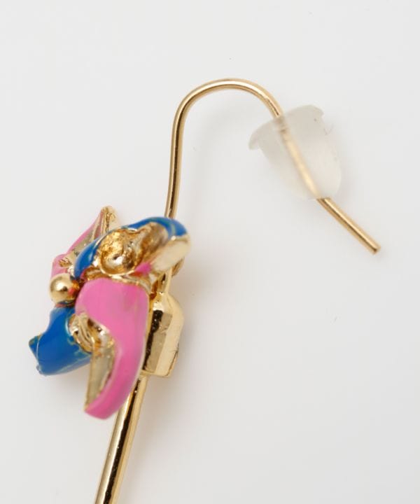 風車をモチーフにした遊び心あふれるピアス。小さな風車がくるくると回る姿が愛らしく、見ているだけで心が弾みます。カラフルな色使いが耳もとを華やかに彩り、和装にも洋装にも自然に馴染む軽やかで上品なデザインです。