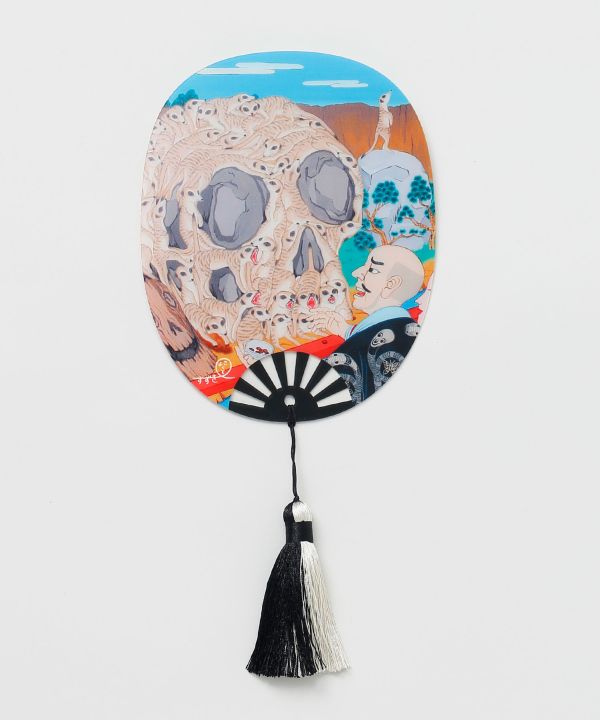 【倭物やカヤ×鈴木ひょっとこ】伝統×現代の融合を魅力的に描く、画家・鈴木ひょっとことのコラボ商品。鮮やかな色彩と独特な世界観が表現されたアクリル団扇。タッセルが上品なアクセントとなり、飾っても使っても楽しめるデザイン。和の趣とモダンアートが調和した、インテリアにも映えるアイテムです。