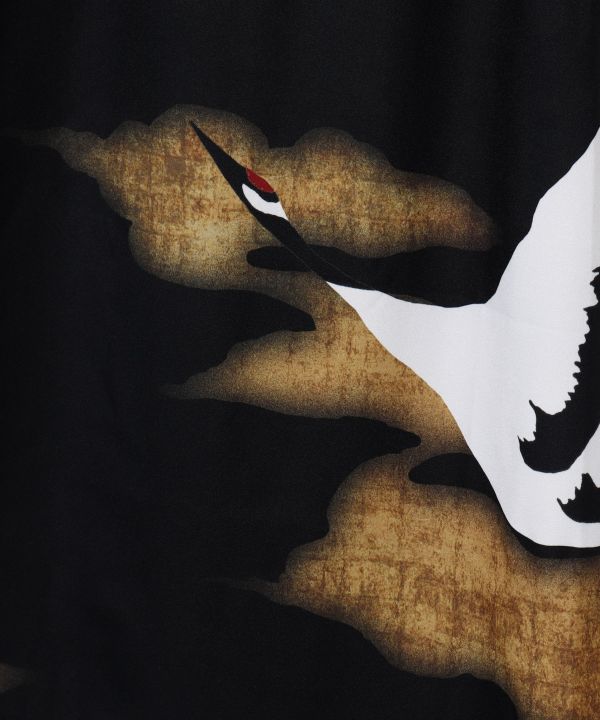 ジャカード生地の帯と無地スカートを組み合わせたセット商品。鶴と瑞雲の縁起柄が華やかで、帯の裏にはしっかりと固定できる仕様を施しています。帯は取り外し可能で、自由な着こなしを楽しめます。同シリーズのトップスと合わせると、和の雰囲気を感じる上品な装いをお楽しみいただけます。