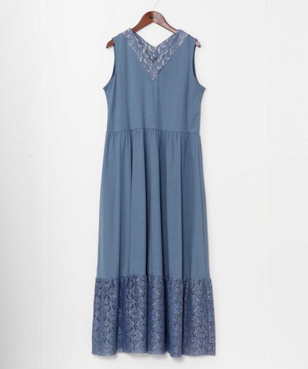 レースをあしらったワンピース型のインナー。ワンピースの下に重ねると、襟元と裾からレースが覗く華やかなデザインです。身頃には肌ざわりの良い綿素材のカットソーを使用。薄手で重ね着してももたつかず、コーディネートの幅を広げてくれる便利なワンピースです。