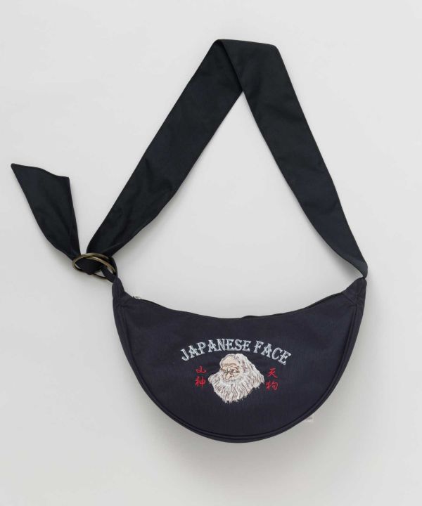 日本を代表する「顔」が刺しゅうされたたすきバッグ。浮世絵のようなユニークなデザインと撥水加工の実用性を兼ね備え、和モダンなスタイルにぴったりです。