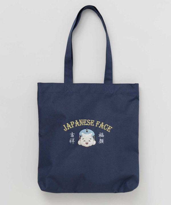 日本を代表する「顔」が刺しゅうされたトートバッグ。浮世絵風のユニークなデザインが目を引き、撥水加工生地で実用性も抜群。和のアクセントとして日常使いに活躍するアイテムです。