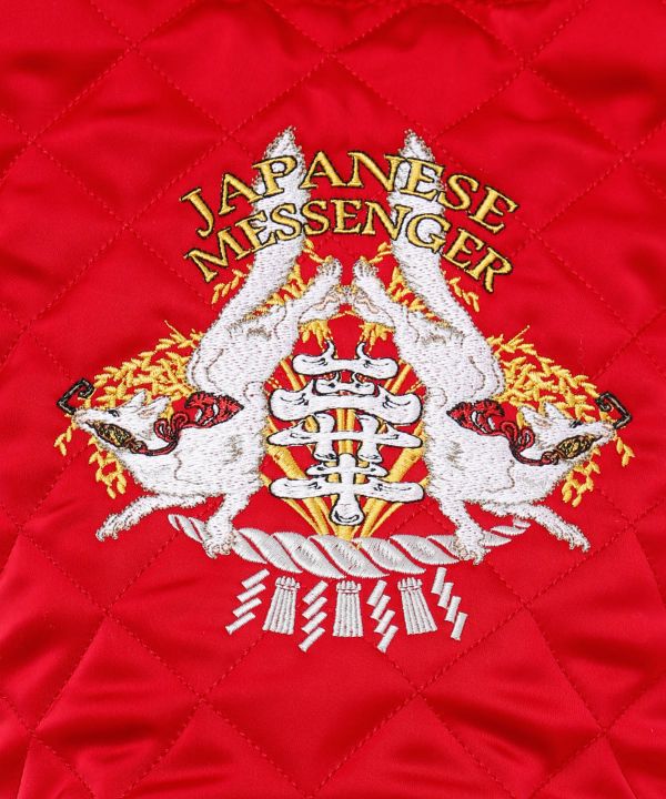 キルト生地×刺しゅうのショルダーバッグ。神様の使い「神使(しんし)」狐・烏・兎を描いた大胆な刺しゅうがポイント。取り外しが可能なショルダー紐が付いているので、手持ちバッグとしても使える仕様になっています。スマホや財布、ペットボトルが入るのでちょっとしたお出かけやサイドバッグとしておすすめです。