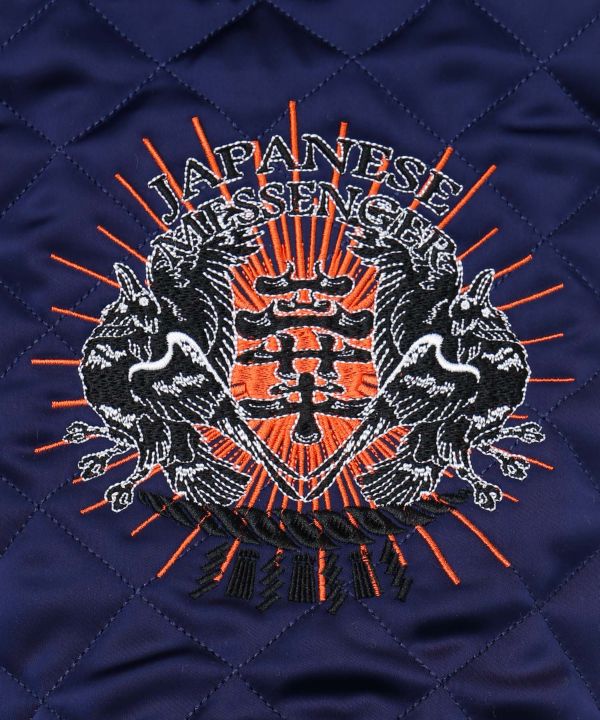 キルト生地×刺しゅうのショルダーバッグ。神様の使い「神使(しんし)」狐・烏・兎を描いた大胆な刺しゅうがポイント。取り外しが可能なショルダー紐が付いているので、手持ちバッグとしても使える仕様になっています。スマホや財布、ペットボトルが入るのでちょっとしたお出かけやサイドバッグとしておすすめです。