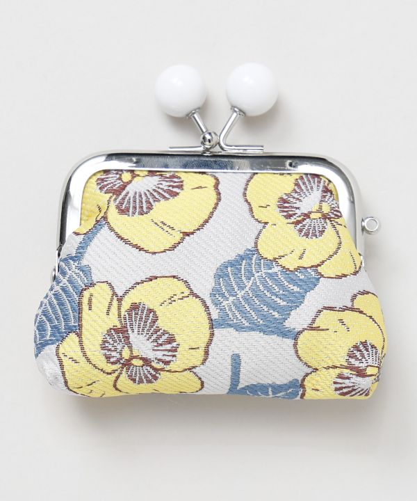 春の花々をモチーフにした、昭和モダンな雰囲気漂う玉付きがま口。ミモザやポピー、パンジーなど季節の彩りを上品に描いたデザインが魅力です。手のひらに収まる小ぶりなサイズで、小銭入れとしてはもちろん、お薬やアクセサリー入れにもぴったりなアイテムです。