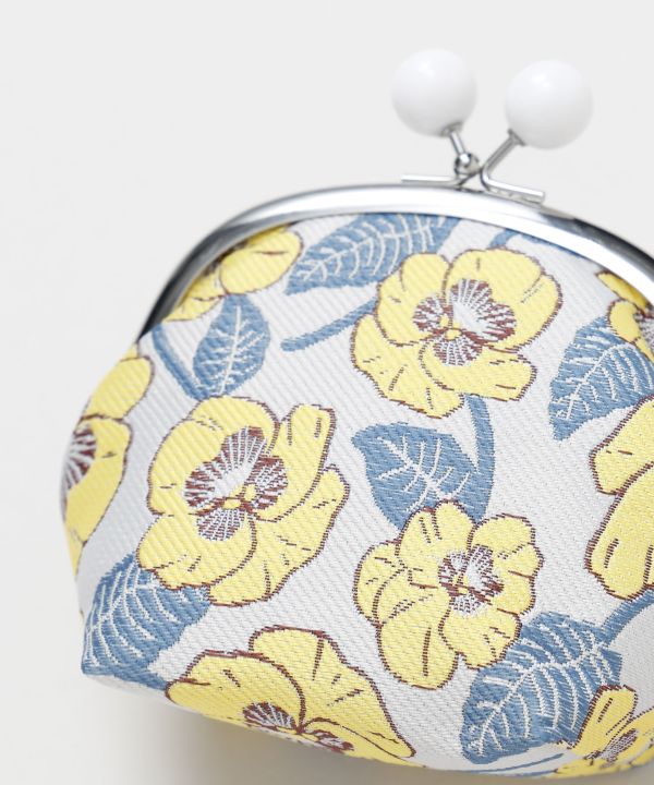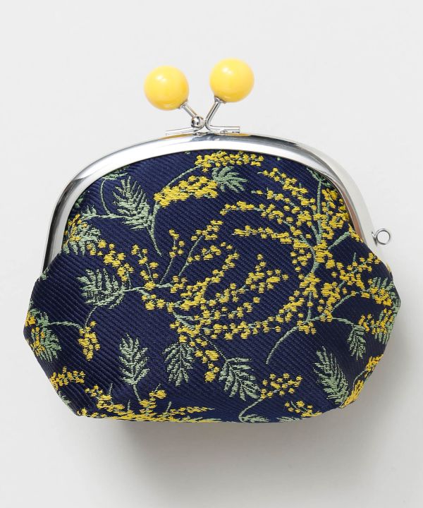 春の花々をモチーフにした、昭和モダンな雰囲気漂う玉付きがま口。ミモザやポピー、パンジーなど季節の彩りを上品に描いたデザインが魅力です。丸みのあるフォルムが愛らしく、開け閉めしやすい玉付き金具もポイント。お菓子や小物などを入れるのにちょうど良いマルチサイズなアイテムです。