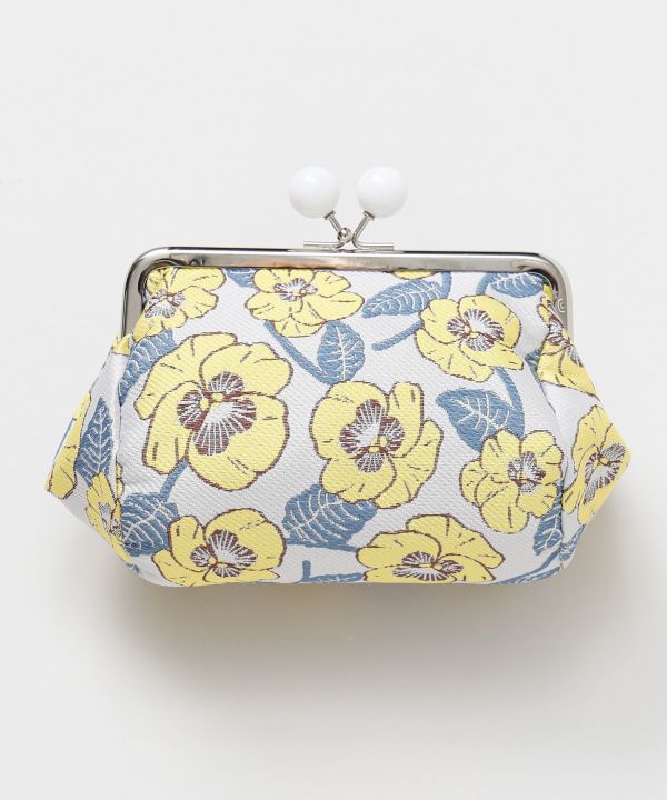 春の花々をモチーフにした、昭和モダンな雰囲気漂う玉付きがま口。ミモザやポピー、パンジーなど季節の彩りを上品に描いたデザインが魅力です。大きく開く口金仕様で中身が見やすく、コスメや小物を入れるのにぴったりなアイテムです。