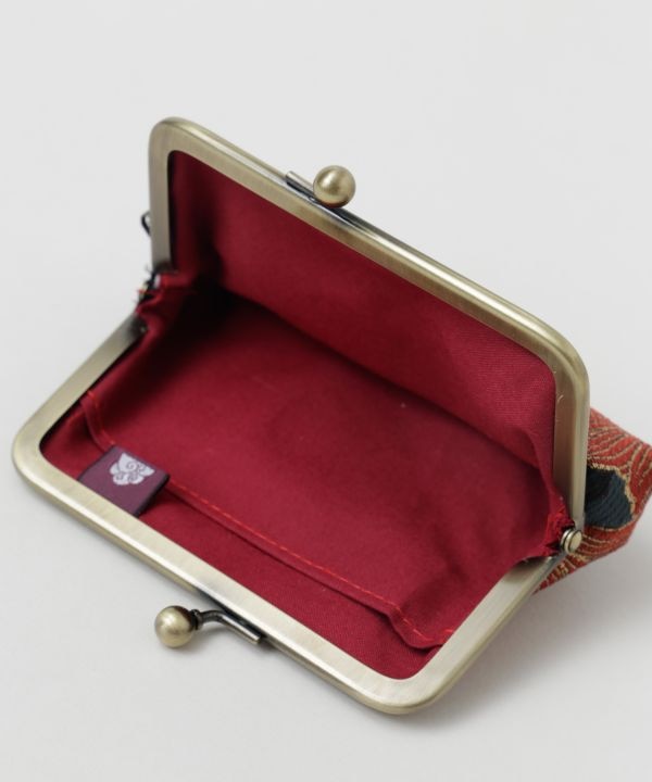金鳳花(きんぽうげ)、芍薬(しゃくやく)、百合(ゆり)の花々を金銀のジャガード織りで上品に表現したがま口小物入れ。織りの光沢が上品にきらめき、伝統の和柄をモダンに仕上げています。手のひらに収まるサイズ感で、小銭やアクセサリー、お守り入れにもぴったり。気品あるデザインは、和装小物としても贈り物としてもおすすめです。