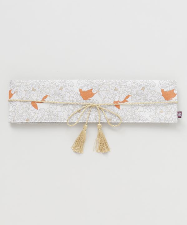 金鳳花(きんぽうげ)、芍薬(しゃくやく)、百合(ゆり)の花々を金銀のジャガード織りで華やかにあしらった帯ベルト。織りの光沢が上品にきらめき、伝統の和柄をモダンに仕上げています。タッセル付き紐がアクセントとなり、ループ状のベルト通しで着けやすい仕様。和装やワンピースのアレンジにも映えるアイテムです。