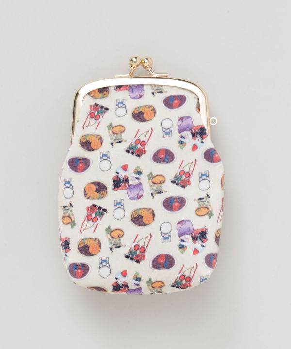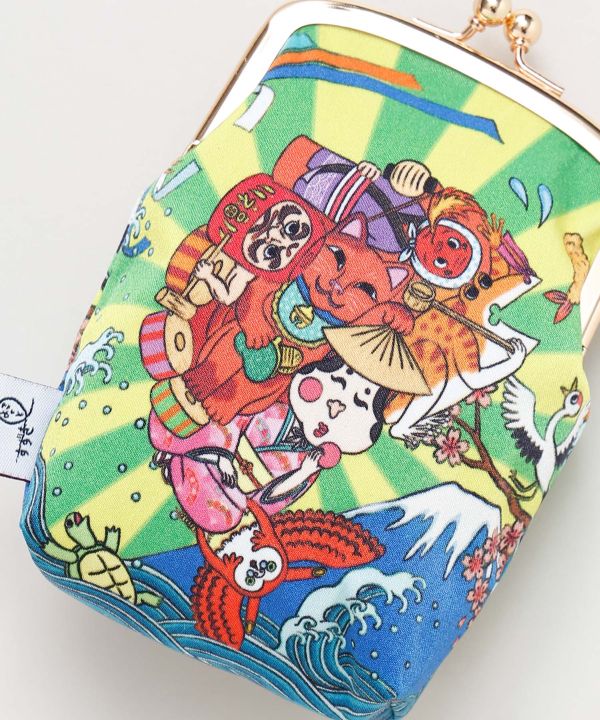 【倭物やカヤ×鈴木ひょっとこ】伝統×現代の融合を魅力的に描く、画家・鈴木ひょっとことのコラボ商品。鮮やかな色彩と独特な世界観が際立つマルチがま口。手のひらに収まるころんとしたフォルムに、金具の口金がレトロな印象。小物やアクセサリー入れとしてはもちろん、ポーチ代わりにも使える万能アイテム。和とモダンが調和した、持つだけで気分が華やぐアイテムです。