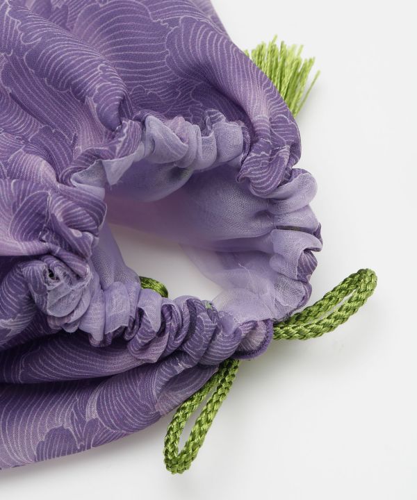 シュシュのようにふんわりと仕上げた紐付きの髪飾り。上品な和柄生地とタッセルが華やかに揺れ、結び方次第で多彩なアレンジが楽しめます。髪に結ぶのはもちろん、手首や袖口に飾っても美しいアクセントになるアイテムです。