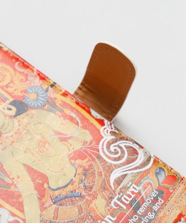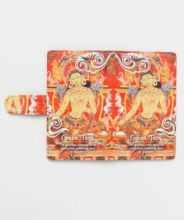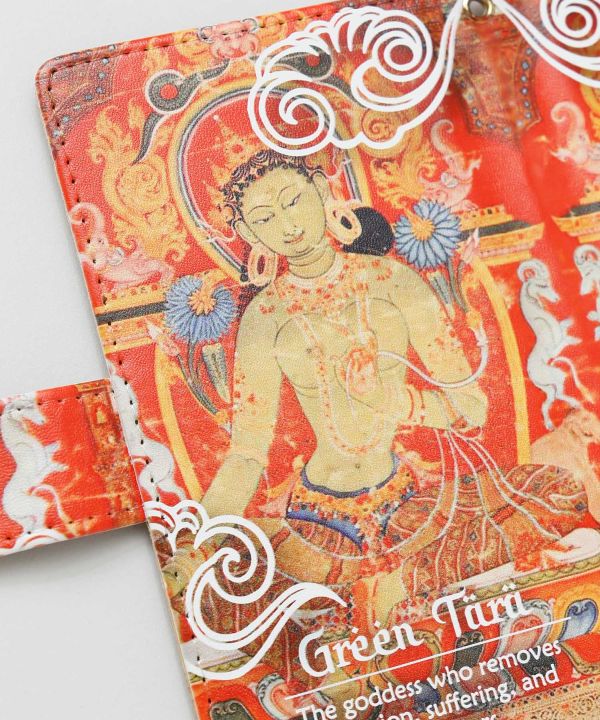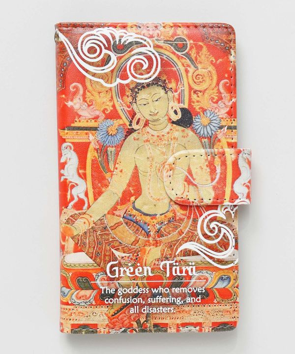 チベット仏教の仏画「タンカ」をモチーフにした手帳型スマホケース。神聖で奥深いモチーフを贅沢に取り入れ、まるで聖地の空気を感じられるようなデザイン。