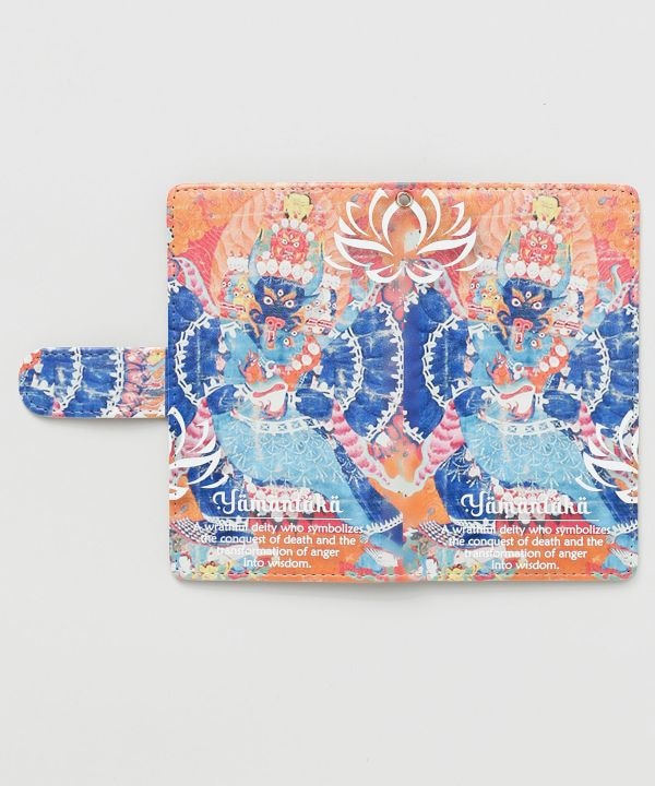 チベット仏教の仏画「タンカ」をモチーフにした手帳型スマホケース。神聖で奥深いモチーフを贅沢に取り入れ、まるで聖地の空気を感じられるようなデザイン。