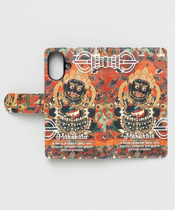 チベット仏教の仏画「タンカ」をモチーフにした手帳型スマホケース。神聖で奥深いモチーフを贅沢に取り入れ、まるで聖地の空気を感じられるようなデザイン。