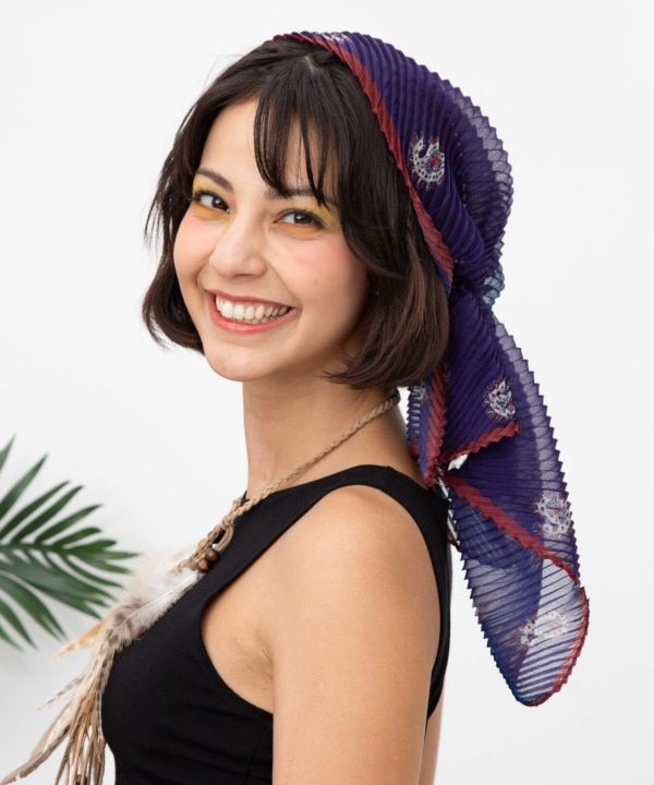 柔らかな質感のダイヤ型ストール。軽やかでふんわりとした巻き心地が特徴で、コーデに取り入れやすい万能アイテム。旅やおでかけにも活躍する一枚。