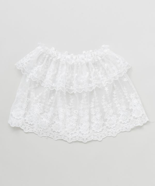 ふんわりとしたギャザー感が華やかなゴム入りWAYスカーフ。透け感のあるレースが優しく揺れ、腰元に巻くだけでフェミニンな印象に。簡単に着けられるのも嬉しいポイント。
