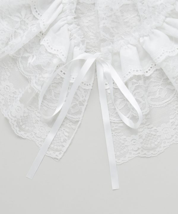 繊細な刺しゅうを施したレースWAYスカーフ。軽やかな素材感とリボンの組み合わせで、付け襟としても腰巻きとしても活用できる万能なデザイン。