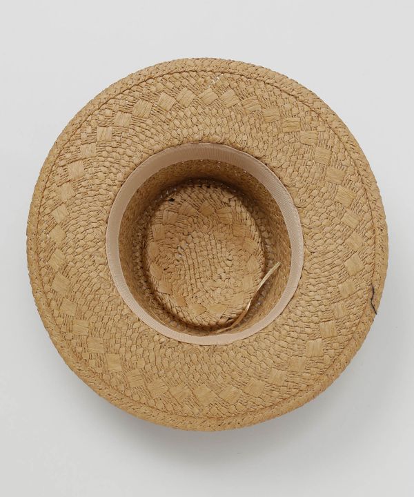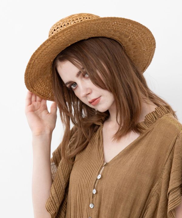 ペーパー素材のツバ広カンカン帽。通気性のあるナチュラル素材と腰帯テープのコントラストが魅力。どんなコーディネートにも取り入れやすいデザインです。