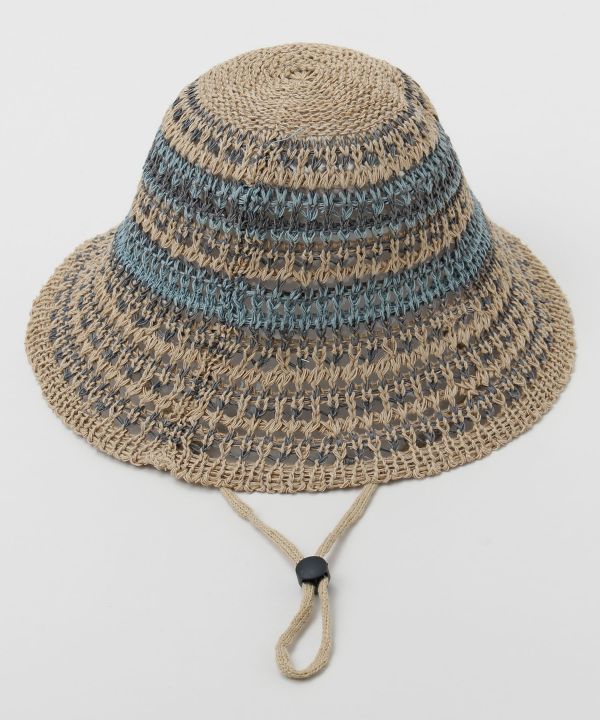 シンプルで軽やかなひも付きバケットハット。風通しの良い素材感と折りたためる仕様で持ち運びにも便利。アウトドアや日差しの強い日のコーデにぴったり。
