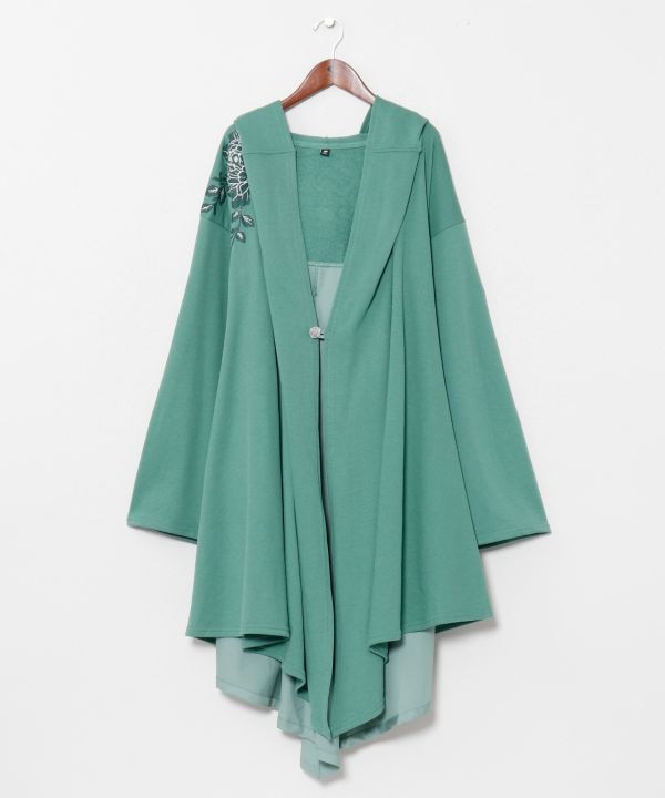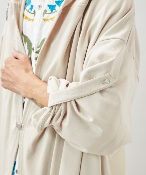 東洋の美と西洋の感性が融合した「シノワズリ」の世界観をまとったメンズカーディガン。牡丹(ぼたん)のプリントに銀糸の刺しゅうが映え、ロングガウン風のフォルムと異素材の切り替えで唯一無二の存在感を放つ一着。