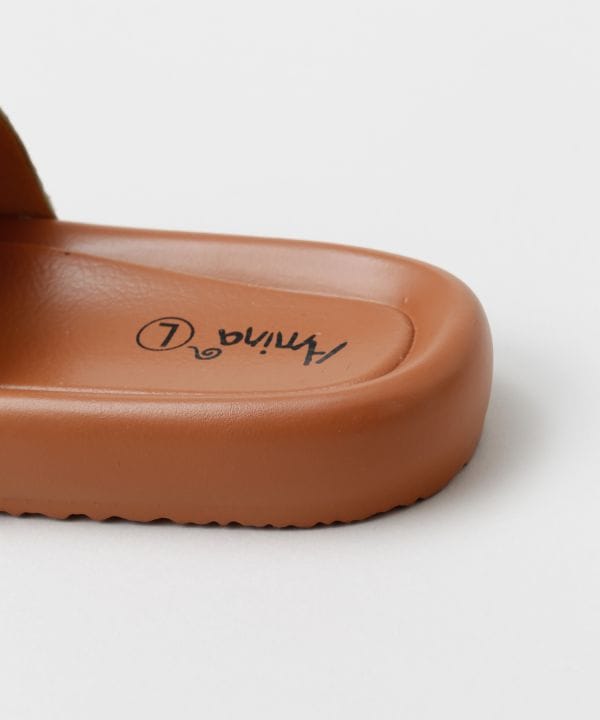 スパンコールが光を受けてきらめくスライドサンダル。丸みのあるソールで歩きやすく、軽やかな履き心地。足元に輝きを添えたいコーデにおすすめ。